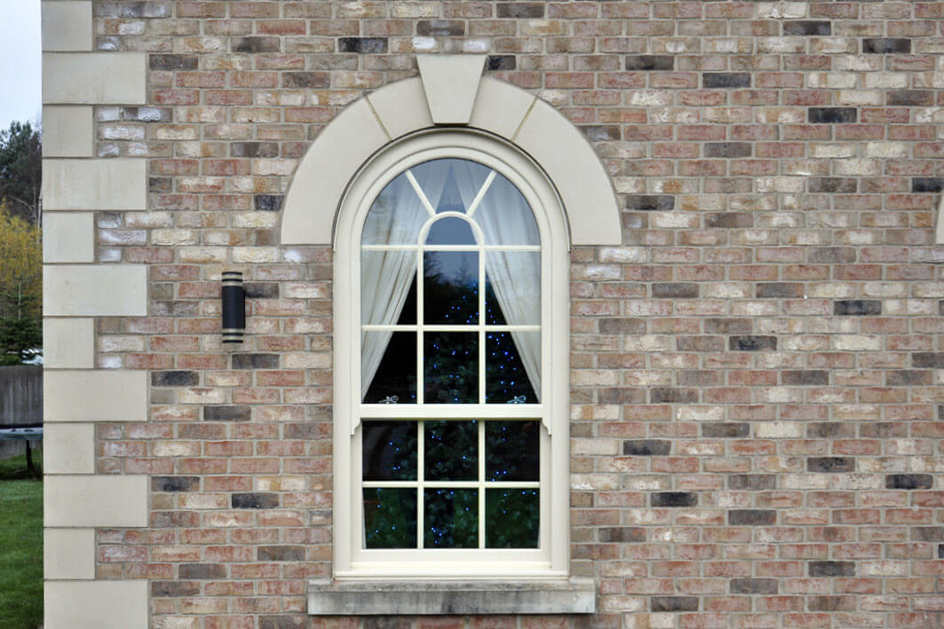 apart from standard sashes. Many windows included arched heads with traditional sunburst astragal bar designs and unequal split sashes for visual balance. All of the windows incorporated traditional run-through horns for authenticity, and colour-coded trickle vents to meet regulations without affecting the overall appearance.